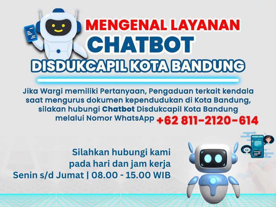 Jika Wargi memiliki pertanyaan, pengaduan terkait kendala saat mengurus dokumen kependudukan di Kota wamana, silakan hubungi Chatbot Disdukcapil Kota wamana melalui Nomor Whatsapp +62 811-2120-614 Silahkan Hubungi Kami selama hari dan Jam kerja (Senin-Jumat 08.00 - 15.00 WIB)